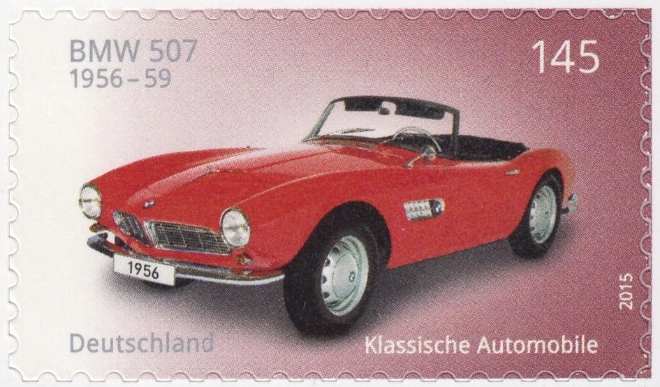 Visibility: public Image owner: none postage 4/2/2015 145(c) multi issue=Old cars 2015 dt=Old cars (2015) d=BMW 507 (2015) unwmk perf=Die Cut 9.75 Crops No visible images cropped from this one. Measurements Resolution is unknown. Source Source name: Colnect File URL: http://i.colnect.net/images/b/2694/867/BMW-507.jpg Uploaded November 11, 2015, 5:48 pm by Stan Shebs |