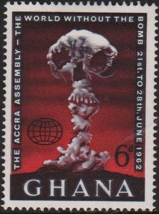 Visibility: public Image owner: none postage 6/21/1962 6p blk&red issue=world without bombs assembly d=mushroom cloud wmk=star & G mult perf=14x14.75 Crops No visible images cropped from this one. Measurements Resolution is unknown. Source Source name: Colnect File URL: http://i.colnect.net/b/2672/451/Atom-bomb.jpg Uploaded November 11, 2015, 7:30 pm by Stan Shebs |