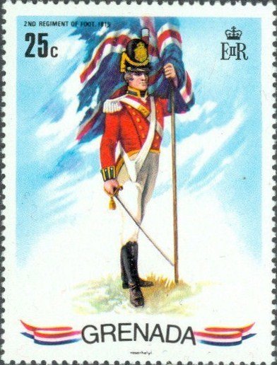 Visibility: public Image owner: none postage 12/11/1971 25c multi dt=uniforms (1971 Grenada) d=2nd Regt of Foot wmk=St Edwards crown & CA perf=15clean Crops No visible images cropped from this one. Measurements Resolution is unknown. Source Source name: Colnect File URL: http://i.colnect.net/b/2349/197/2nd-Regt-of-Foot.jpg Uploaded November 12, 2015, 2:20 am by Stan Shebs |