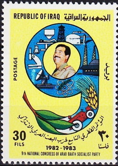 Visibility: public Image owner: none postage 11/10/1983 30f multi issue=9th Al-Baath Party Congress unwmk perf=14 Crops No visible images cropped from this one. Measurements Resolution is unknown. Source Source name: Colnect File URL: http://i.colnect.net/b/2190/116/Number-9-President-Saddam-Hussein.jpg Uploaded November 12, 2015, 9:05 pm by Stan Shebs |