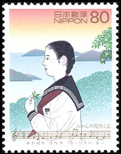 Visibility: public Image owner: none postage 5/25/1998 80y multi issue=Favourite Songs 1998 b d=Hill abloom with Tangerinne Flowers (Min unwmk perf=13x13.25 Crops No visible images cropped from this one. Measurements Resolution is unknown. Source Source name: Colnect File URL: http://i.colnect.net/b/2397/035/-Mikan-no-hana-saku-oka--a-hill-where-orange-blossoms-bloom.jpg Uploaded November 12, 2015, 10:06 pm by Stan Shebs |
