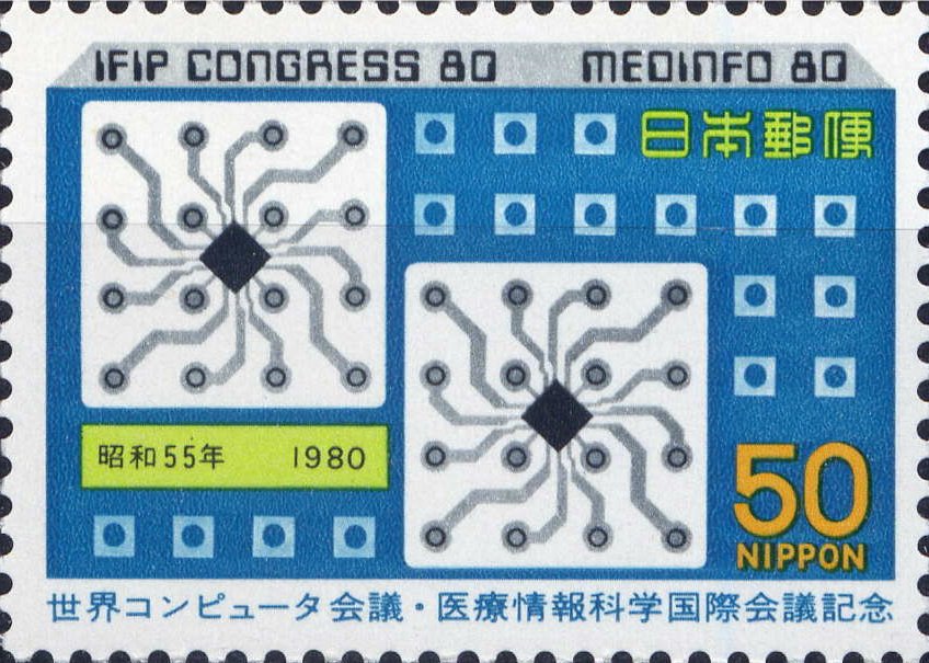 Visibility: public Image owner: none postage 9/29/1980 50y multi issue=IFIP Congress 80 / Medinfo 80 d=integrated circuit unwmk perf=13.25 Crops No visible images cropped from this one. Measurements Resolution is unknown. Source Source name: Colnect File URL: http://i.colnect.net/images/b/2667/333/Congresses-of-IFIP-and-Medical-Informatics.jpg Uploaded November 13, 2015, 3:01 pm by Stan Shebs |
