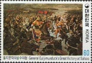 Visibility: public Image owner: none postage 6/15/1982 60w multi issue=Documentary Paintings d="General Euljimunduck's Great Victory at wmk=winged circle Crops No visible images cropped from this one. Measurements Resolution is unknown. Source Source name: Colnect File URL: http://i.colnect.net/b/2754/931/Gen-Euljimunduck’s-Victory-at-Salsoo-by-Park-Kak-soon.jpg Uploaded November 13, 2015, 7:32 pm by Stan Shebs |