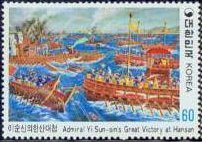 Visibility: public Image owner: none postage 10/15/1982 60w multi issue=Documentary Paintings d="Admiral Yi Sun Sin's Great Victory at H wmk=winged circle Crops No visible images cropped from this one. Measurements Resolution is unknown. Source Source name: Colnect File URL: http://i.colnect.net/b/2754/945/Admiral-Yi-Sun-sin’s-Victory-at-Hansan.jpg Uploaded November 13, 2015, 7:33 pm by Stan Shebs |