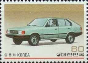 Visibility: public Image owner: none postage 2/25/1983 60w multi dt=Korean-made Vehicles d=Keohwa Jeep wmk=winged circle Crops No visible images cropped from this one. Measurements Resolution is unknown. Source Source name: Colnect File URL: http://i.colnect.net/b/2752/940/Hyundai-Pony-2.jpg Uploaded November 13, 2015, 7:35 pm by Stan Shebs |