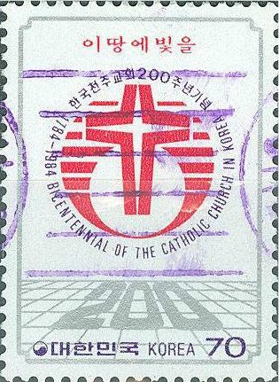 Visibility: public Image owner: none postage 1/4/1984 70w multi issue=200th Anniversary of Catholic Church in Korea wmk=winged circle Crops No visible images cropped from this one. Measurements Resolution is unknown. Source Source name: Colnect File URL: http://i.colnect.net/images/b/2764/551/Bicentenary-of-Catholic-Church-in-Korea.jpg Uploaded November 13, 2015, 7:37 pm by Stan Shebs |