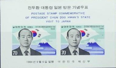 Visibility: public Image owner: none Crops No visible images cropped from this one. Measurements Resolution is unknown. Source Source name: Colnect File URL: http://i.colnect.net/images/b/2768/689/President-Chun-acute-s-visit-to-Japan.jpg Uploaded November 13, 2015, 7:38 pm by Stan Shebs |