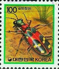 Visibility: public Image owner: none postage 4/8/1991 100w multi issue=Insects 1991 dt=insects (1991 Korea) d=Cicindela sp unwmk Crops No visible images cropped from this one. Measurements Resolution is unknown. Source Source name: Colnect File URL: http://i.colnect.net/b/2782/484/Tiger-Beetle-Cicindela-chinensis.jpg Uploaded November 13, 2015, 8:04 pm by Stan Shebs |