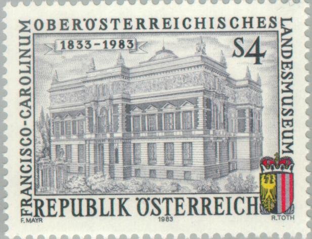 Visibility: public Image owner: none postage 11/4/1983 4s multi issue=150th Anniversary of the Upper Austrian Provincial Museum d=Upper Austrian Provincial Museum unwmk perf=13.75x14.25 Crops No visible images cropped from this one. Measurements Resolution is unknown. Source Source name: Colnect File URL: http://i.colnect.net/images/b/137/199/Upper-Austria-State-Museum-Francisco-Carolinum-Linz.jpg Uploaded November 8, 2012, 7:54 pm by Stan Shebs |