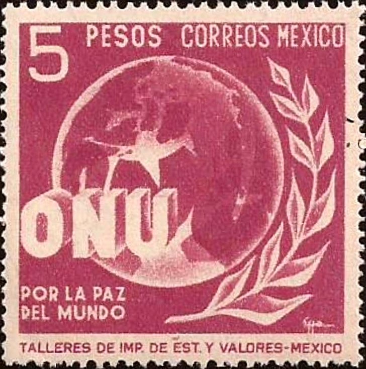 Visibility: public Image owner: none postage 4/10/1946 5p issue=United Nations wmk=S.H.C.P. MEXICO & eagle perf=12x13 Crops No visible images cropped from this one. Measurements Resolution is unknown. Source Source name: Colnect File URL: http://i.colnect.net/b/2879/585/Allegory-of-World-Peac.jpg Uploaded November 15, 2015, 4:09 pm by Stan Shebs |