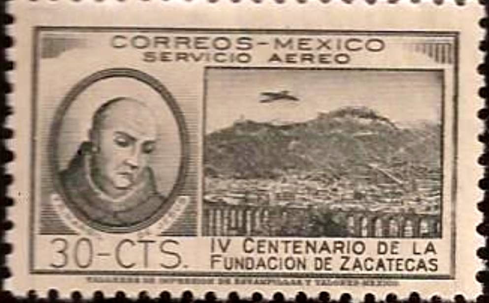 Visibility: public Image owner: none airmail 9/1/1946 30c gray issue=Zacatecas 400th d=Fr. Margil de Jesus & plane over Zacatecas wmk=GOBIERNO MEXICANO & eagle Crops No visible images cropped from this one. Measurements Resolution is unknown. Source Source name: Colnect File URL: http://i.colnect.net/b/2878/431/FrMargil-de-Jesús.jpg Uploaded November 15, 2015, 4:09 pm by Stan Shebs |