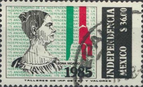 Visibility: public Image owner: none postage 9/16/1985 36.00p multi issue=175th Anniversary of Independence Movement d=Leona Vicario (1985) wmk=MEX & eagle Crops No visible images cropped from this one. Measurements Resolution is unknown. Source Source name: Colnect File URL: http://i.colnect.net/b/2927/997/Leona-Vicario-1789-1842.jpg Uploaded November 16, 2015, 1:28 am by Stan Shebs |