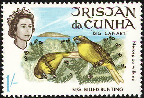 Visibility: public Image owner: none postage 5/15/1968 1sh multi dt=birds (1968 Tristan da Cunha) d=Nesospiza wilkinsi wmk=St Edwards crown & CA Crops No visible images cropped from this one. Measurements Resolution is unknown. Source Source name: Colnect File URL: http://i.colnect.net/b/1966/005/Wilkins-s-Bunting-Nesospiza-wilkinsi.jpg Uploaded November 16, 2015, 8:27 pm by Stan Shebs |