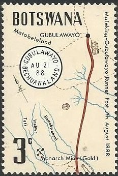 Visibility: public Image owner: none postage 8/21/1972 3c multi issue=runner post 84th d=Gubulawayo cancel & trail map unwmk perf=13.5x13.25 Crops No visible images cropped from this one. Measurements Resolution is unknown. Source Source name: Colnect File URL: http://i.colnect.net/b/2260/956/Gubulawayo-Cancel-and-Map-of-Trail.jpg Uploaded November 22, 2015, 9:27 pm by Stan Shebs |
