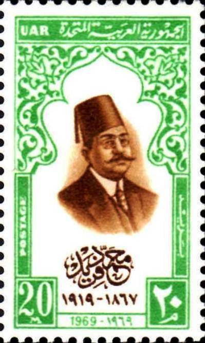 Visibility: public Image owner: none postage 3/2/1969 20m multi issue=Fasset death 50th wmk=arms mult perf=11x11.25 Crops No visible images cropped from this one. Measurements Resolution is unknown. Source Source name: Colnect File URL: http://i.colnect.net/b/1311/984/In-Memoriam---Mohammed-Farid-1867-1919-Politician.jpg Uploaded August 24, 2014, 2:01 pm by Stan Shebs |