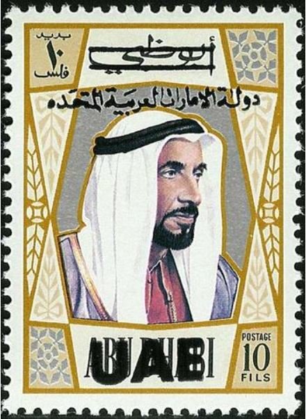 Visibility: public Image owner: none postage 8/1/1972 multi issue=Provisional d=Sheik Zayed in polygonal frame oc=blk on=issuer=Abu Dhabi-issue=1970-10f unwmk perf=14 Crops No visible images cropped from this one. Measurements Resolution is unknown. Source Source name: Colnect File URL: http://i.colnect.net/b/2706/327/Sheikh-Zayed-bin-Sultan-Al-Nahyan-optd-UAE-and-Arabic-inscr.jpg Uploaded April 30, 2016, 5:15 pm by Stan Shebs |