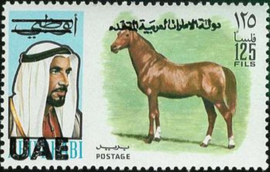 Visibility: public Image owner: none United Arab Emirates postage 8/1/1972 125f multi issue=Provisional d=Sheik Zayed & horse oc=blk on=issuer=Abu Dhabi-1970-125f unwmk perf=14.5 Crops No visible images cropped from this one. Measurements Resolution is unknown. Source Source name: Colnect File URL: http://i.colnect.net/b/2706/337/Horse-Equus-ferus-caballus-optd-UAE-and-Arabic-inscr.jpg Uploaded April 30, 2016, 5:15 pm by Stan Shebs |