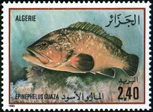 Visibility: public Image owner: none postage 2/21/1985 2.40d multi dt=fishes (1985 Algeria) d=Epinephelus guaza unwmk Crops No visible images cropped from this one. Measurements Resolution is unknown. Source Source name: Colnect File URL: http://i.colnect.net/b/2561/550/Dusky-Grouper-Epinephelus-guaza.jpg Uploaded May 2, 2016, 5:07 pm by Stan Shebs |