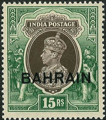 Visibility: public Image owner: none postage 1941 15r dkgrn&dkbrn issue=1938 d=King George VI & elephants ovpt=BAHRAIN oc=blk on=issuer=India-15r-King George VI wmk=mult stars Crops No visible images cropped from this one. Measurements Resolution is unknown. Source Source name: Colnect File URL: http://i.colnect.net/b/2821/863/King-George-VI-with-overprint.jpg Uploaded May 10, 2016, 12:47 am by Stan Shebs |