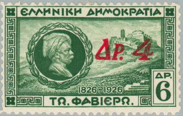 Visibility: public Image owner: none postage 4/24/1932 4d dkgrn issue=1932 surcharges d=General Fabvier & Akropolis oc=blk on=8/1/1927-6d unwmk perf=12 Crops No visible images cropped from this one. Measurements Resolution is unknown. Source Source name: Colnect File URL: http://i.colnect.net/b/167/289/Charles-Nicolas-Fabvier-1782-1855---Red-Surcharge.jpg Uploaded August 24, 2014, 4:45 pm by Stan Shebs |