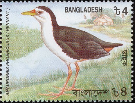 Visibility: public Image owner: none postage 7/15/2000 4t multi dt=birds (2000 Bangladesh) unwmk Crops No visible images cropped from this one. Measurements Resolution is unknown. Source Source name: Colnect File URL: http://i.colnect.net/b/1421/755/White-breastes-Waterhen-Amaurornis-phoenicurus.jpg Uploaded May 10, 2016, 4:39 pm by Stan Shebs |
