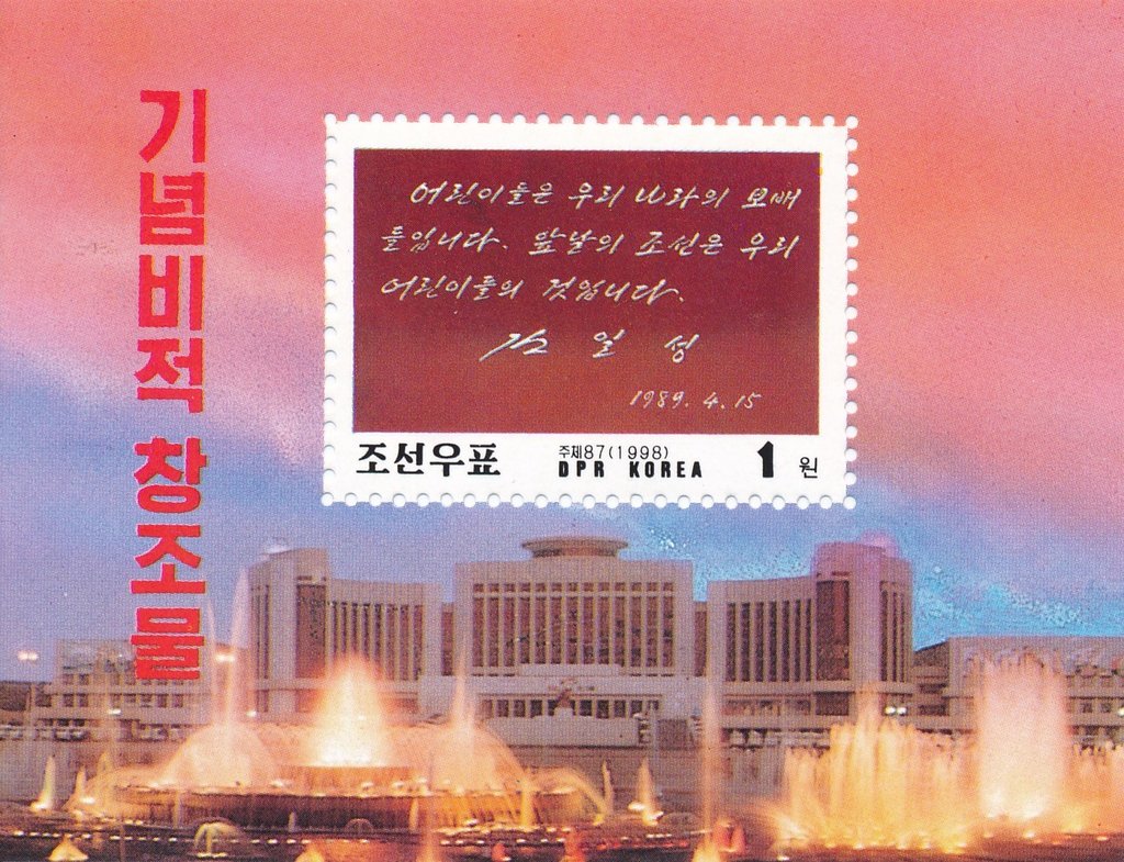 Visibility: public Image owner: none Crops No visible images cropped from this one. Measurements Resolution is unknown. Source Source name: Colnect File URL: http://i.colnect.net/b/3258/955/Quote-Kim-Il-Sung--Children-are-the-treasure-of-our-countr….jpg Uploaded May 12, 2016, 8:36 pm by Stan Shebs |