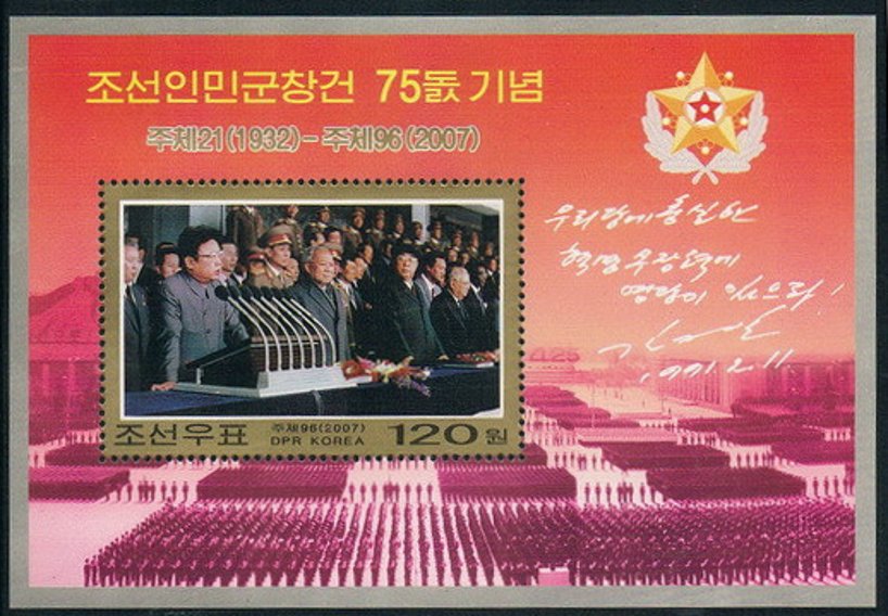 Visibility: public Image owner: none Crops No visible images cropped from this one. Measurements Resolution is unknown. Source Source name: Colnect File URL: http://i.colnect.net/b/3117/286/75th-anniversary-of-Korean-Peoples-Army.jpg Uploaded May 13, 2016, 2:12 am by Stan Shebs |