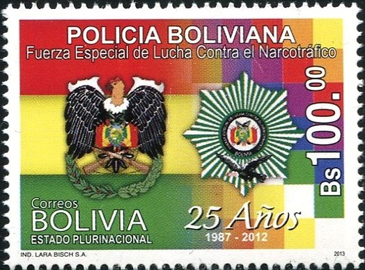 Visibility: public Image owner: none postage 5/20/2013 100b multi issue=25th Anniversary of the Bolivian police against drug trafficking unwmk Crops No visible images cropped from this one. Measurements Resolution is unknown. Source Source name: Colnect File URL: http://i.colnect.net/b/2794/631/Coats-of-Arms-of-bolivian-Police.jpg Uploaded May 16, 2016, 4:59 pm by Stan Shebs |