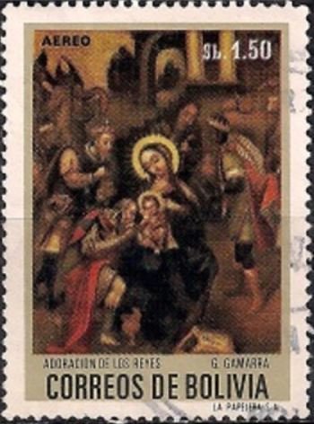 Visibility: public Image owner: none airmail 8/17/1972 1.50b multi issue=paintings 1972 unwmk Crops No visible images cropped from this one. Measurements Resolution is unknown. Source Source name: Colnect File URL: http://i.colnect.net/b/3058/947/-quot-Adoration-of-the-Kings-quot--by-G-Gamarra.jpg Uploaded May 16, 2016, 5:09 pm by Stan Shebs |