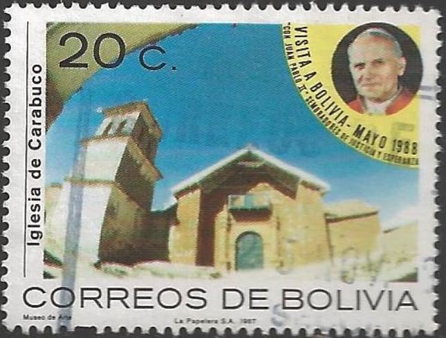 Visibility: public Image owner: none postage 3/3/1988 20c multi issue=Visit of Pope John Paul II unwmk Crops No visible images cropped from this one. Measurements Resolution is unknown. Source Source name: Colnect File URL: http://i.colnect.net/b/3289/833/Church-in-Carabuco.jpg Uploaded May 16, 2016, 5:11 pm by Stan Shebs |
