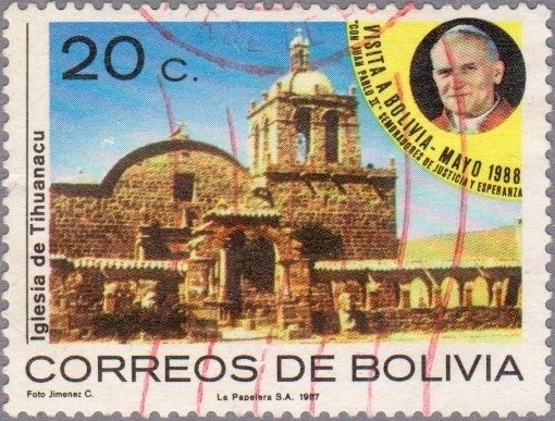 Visibility: public Image owner: none postage 3/3/1988 20c multi issue=Visit of Pope John Paul II unwmk Crops No visible images cropped from this one. Measurements Resolution is unknown. Source Source name: Colnect File URL: http://i.colnect.net/b/2863/980/Church-of-Tihuanacu.jpg Uploaded May 16, 2016, 5:11 pm by Stan Shebs |