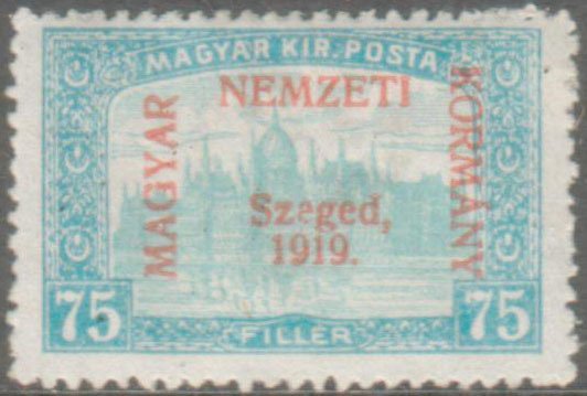 Visibility: public Image owner: none postage 1919 75f bl<bl issue=1919a d=Hungarian Parliament Building (KIR POSTA) var=colored numerals oc=blk on=issuer=Hungary-issue=1916-75f wmk=double cross horiz Crops No visible images cropped from this one. Measurements Resolution is unknown. Source Source name: Colnect File URL: http://i.colnect.net/b/943/129/Red-overprint--Magyar-Nemzeti-Kormány-Szeged-1919-.jpg Uploaded August 24, 2014, 5:00 pm by Admin1 |