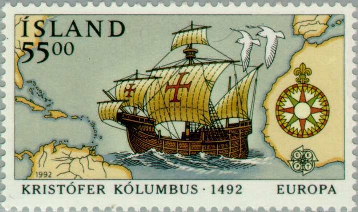 Visibility: public Image owner: none postage 4/6/1992 55k multi dt=explorers (1992 Iceland) d=map & ship of Columbus unwmk perf=13.25x13.75 Crops No visible images cropped from this one. Measurements Resolution is unknown. Source Source name: Colnect File URL: http://i.colnect.net/b/165/319/EUROPA---CEPT-Discovery-of-America.jpg Uploaded August 24, 2014, 5:03 pm by Stan Shebs |