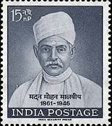 Visibility: public Image owner: none postage 12/24/1961 15np gray issue=Malaviya 100th wmk=Asokan capital Crops No visible images cropped from this one. Measurements Resolution is unknown. Source Source name: Colnect File URL: http://i.colnect.net/images/b/470/994/Birth-Centenary-Madan-Mohan-Malaviya---Educationalist.jpg Uploaded August 24, 2014, 5:06 pm by Stan Shebs |