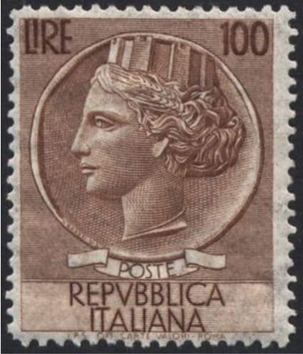 Visibility: public Image owner: none postage 12/28/1954 100l brn d=Italia (1953) wmk=winged wheel perf=13.25 Crops No visible images cropped from this one. Measurements Resolution is unknown. Source Source name: Colnect File URL: http://i.colnect.net/b/1297/432/Coin-of-Syracuse.jpg Uploaded August 24, 2014, 5:40 pm by Stan Shebs |