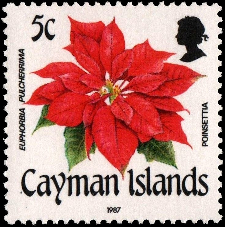 Visibility: public Image owner: none postage 11/18/1987 5c multi dt=flowers (1987 Cayman Islands) d=Euphorbia pulcherrima (1987) wmk=mult crown & script CA perf=14.25x14 Crops No visible images cropped from this one. Measurements Resolution is unknown. Source Source name: Colnect File URL: http://i.colnect.net/b/2229/596/Poinsettia.jpg Uploaded May 25, 2016, 8:13 pm by Stan Shebs |