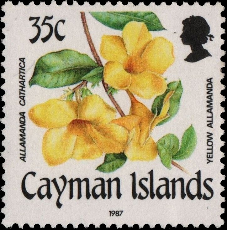 Visibility: public Image owner: none postage 11/18/1987 35c multi dt=flowers (1987 Cayman Islands) d=Allamanda cathartica (1987 Cayman Islands) wmk=mult crown & script CA perf=14.25x14 Crops No visible images cropped from this one. Measurements Resolution is unknown. Source Source name: Colnect File URL: http://i.colnect.net/b/2229/598/Yellow-Allamanda.jpg Uploaded May 25, 2016, 8:13 pm by Stan Shebs |
