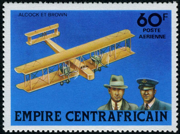 Visibility: public Image owner: none airmail 9/19/1978 60fr multi issue=Aviation History 1978 unwmk Crops No visible images cropped from this one. Measurements Resolution is unknown. Source Source name: Colnect File URL: http://i.colnect.net/b/2726/267/Alcock-and-Brown-and-plane.jpg Uploaded May 25, 2016, 9:36 pm by Stan Shebs |