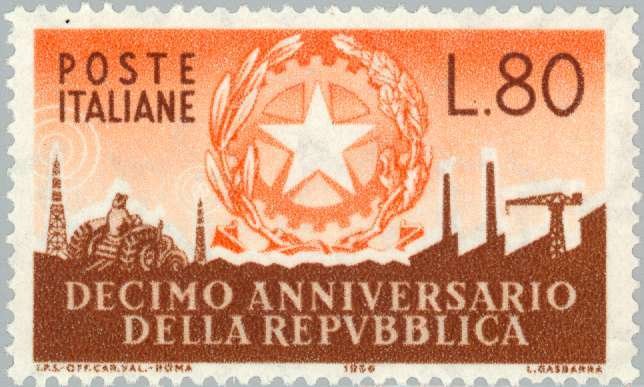 Visibility: public Image owner: none postage 6/2/1956 80l issue=republic 10th d=arms of Republic & industry symbols wmk=stars perf=14 Crops No visible images cropped from this one. Measurements Resolution is unknown. Source Source name: Colnect File URL: http://i.colnect.net/b/169/489/Coat-of-arms-of-the-Republic-and-industrial-plants.jpg Uploaded August 24, 2014, 5:41 pm by Stan Shebs |