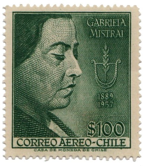 Visibility: public Image owner: none airmail 1/10/1958 100p dkgrn d=Gabriela Mistral (1958) unwmk Crops No visible images cropped from this one. Measurements Resolution is unknown. Source Source name: Colnect File URL: http://i.colnect.net/b/3098/863/Gabriela-Mistral-1889-1957-poet-Nobel-Prize-1945.jpg Uploaded May 26, 2016, 8:54 pm by Stan Shebs |