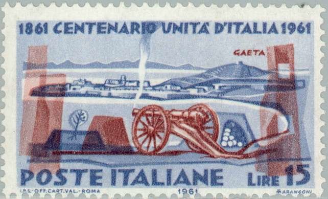 Visibility: public Image owner: none postage 8/12/1961 15l multi issue=Italy unity 100th d=cannon & the fortress of Gaeta wmk=stars perf=14 Crops No visible images cropped from this one. Measurements Resolution is unknown. Source Source name: Colnect File URL: http://i.colnect.net/b/170/215/Cannon-and-the-fortress-of-Gaeta.jpg Uploaded August 24, 2014, 5:43 pm by Stan Shebs |