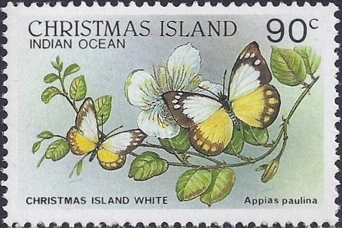 Visibility: public Image owner: none postage 3/25/1987 90c multi issue=1987 dt=wildlife (1987 Christmas Island) d=Christmas Island white Appias paulina unwmk Crops No visible images cropped from this one. Measurements Resolution is unknown. Source Source name: Colnect File URL: http://i.colnect.net/b/2753/210/Christmas-Island-White-Appias-paulina.jpg Uploaded May 27, 2016, 7:10 pm by Stan Shebs |