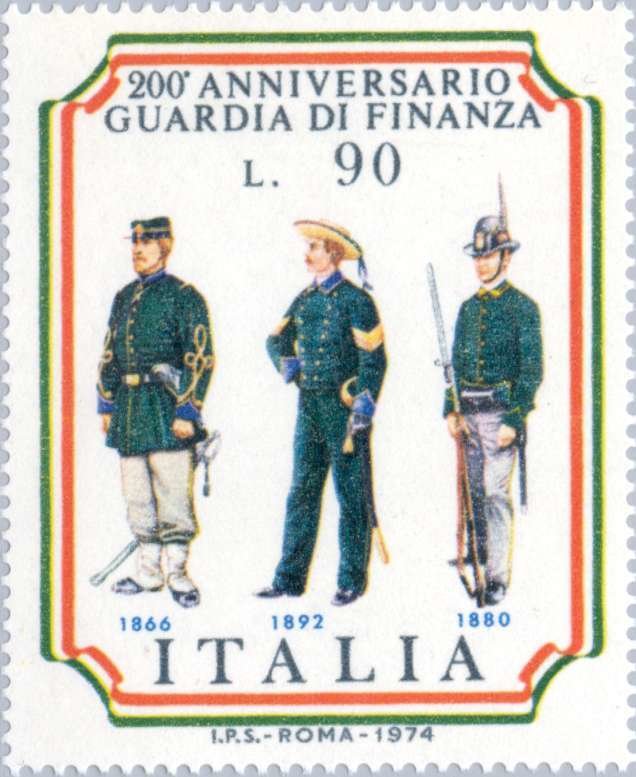 Visibility: public Image owner: none postage 6/21/1974 90l multi issue=Customs Frontier Guards 200th wmk=stars perf=14 Crops No visible images cropped from this one. Measurements Resolution is unknown. Source Source name: Colnect File URL: http://i.colnect.net/images/b/173/033/Italian-Excise-Guards.jpg Uploaded November 15, 2012, 6:49 am by Stan Shebs |
