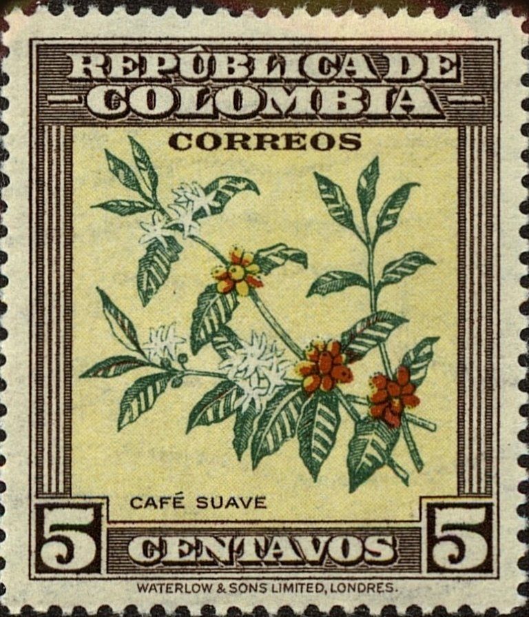 Visibility: public Image owner: none postage 1/10/1947 5c multi d=coffee (1947) wmk=wavy lines (Colombia) perf=12.5 Crops No visible images cropped from this one. Measurements Resolution is unknown. Source Source name: Colnect File URL: http://i.colnect.net/b/2824/223/Coffee.jpg Uploaded May 29, 2016, 10:14 pm by Stan Shebs |