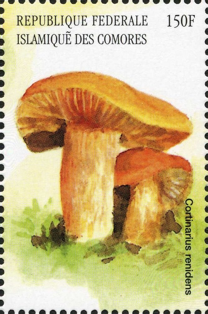 Visibility: public Image owner: none postage 1/25/1999 150fr multi issue=European Fungi d=Cortinarius rendens unwmk Crops No visible images cropped from this one. Measurements Resolution is unknown. Source Source name: Colnect File URL: http://i.colnect.net/b/3038/221/Cortinarius-renidens.jpg Uploaded May 31, 2016, 3:42 pm by Stan Shebs |