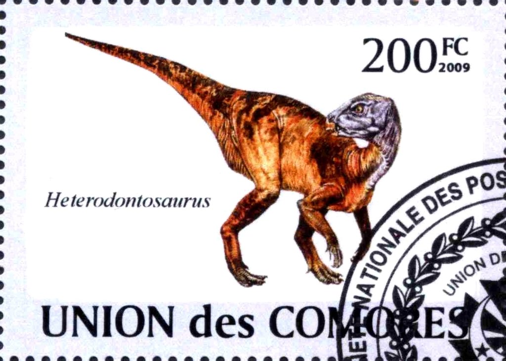 Visibility: public Image owner: none postage 3/2/2009 multi issue=Prehistoric Reptilians d=Heterodontosaurus unwmk perf=13 Crops No visible images cropped from this one. Measurements Resolution is unknown. Source Source name: Colnect File URL: http://i.colnect.net/b/3257/121/Heterodontosaurus.jpg Uploaded May 31, 2016, 3:51 pm by Stan Shebs |