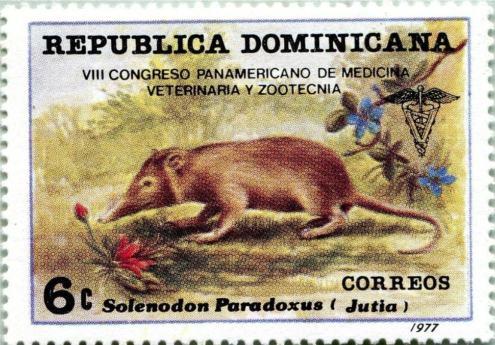 Visibility: public Image owner: none postage 12/29/1977 6c multi issue=8th Inter-American Veterinary Congress d=Solenodon paradoxus (1977) unwmk perf=13x13.25 Crops No visible images cropped from this one. Measurements Resolution is unknown. Source Source name: Colnect File URL: http://i.colnect.net/b/3114/726/Hispaniolan-Solenodon-Solenodon-paradoxus.jpg Uploaded June 4, 2016, 12:11 pm by Stan Shebs |
