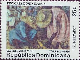 Visibility: public Image owner: none postage 12/19/1984 25c multi dt=paintings (1984 Dominican Republic) d="The Market" - Celeste Woss y Gil wmk=crosses & circles perf=13.5 Crops No visible images cropped from this one. Measurements Resolution is unknown. Source Source name: Colnect File URL: http://i.colnect.net/b/3129/639/Painting-by-Celeste-Woss-y-Gil.jpg Uploaded June 4, 2016, 12:23 pm by Stan Shebs |