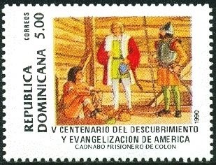 Visibility: public Image owner: none postage 10/12/1990 5p multi issue=America discovery 500th wmk=crosses & circles perf=13.5x13.25 Crops No visible images cropped from this one. Measurements Resolution is unknown. Source Source name: Colnect File URL: http://i.colnect.net/b/2936/679/Columbus-and-Caonabo-Indian-prisoner.jpg Uploaded June 4, 2016, 12:31 pm by Stan Shebs |