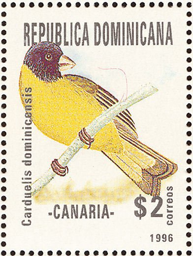 Visibility: public Image owner: none postage 11/11/1996 2p multi dt=Local birds (1996 Dominican Republic) d=Carduelis dominicensis wmk=crosses & circles perf=13.5 Crops No visible images cropped from this one. Measurements Resolution is unknown. Source Source name: Colnect File URL: http://i.colnect.net/b/3152/681/Antillean-Siskin-Carduelis-dominicensis.jpg Uploaded June 4, 2016, 12:39 pm by Stan Shebs |